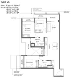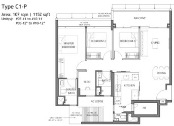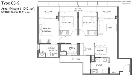 3 Bedroom + Flexi: 926/980/1012/1023/1044 sqft